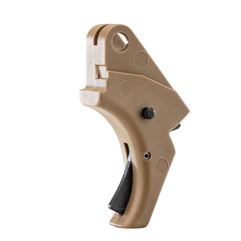 Arizona’s 110-degree summer heat won’t soften or warp this trigger. The aluminum body stays rigid. The hard-anodized finish resists corrosion from sweat, rain, and cleaning solvents. The trigger shoe shape is optimized for gloved and ungloved hands — no sharp edges, no snag points. Works with standard holsters designed for these pistols.