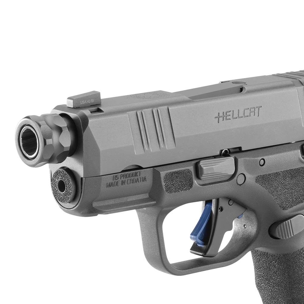 Both barrels are designed exclusively for the Springfield Armory Hellcat and Hellcat Pro platforms. Drop-in installation means you retain your factory recoil spring and slide assembly. The threaded version’s 1/2-28 pattern is the standard for 9mm suppressors and compensators — you won’t need adapters or