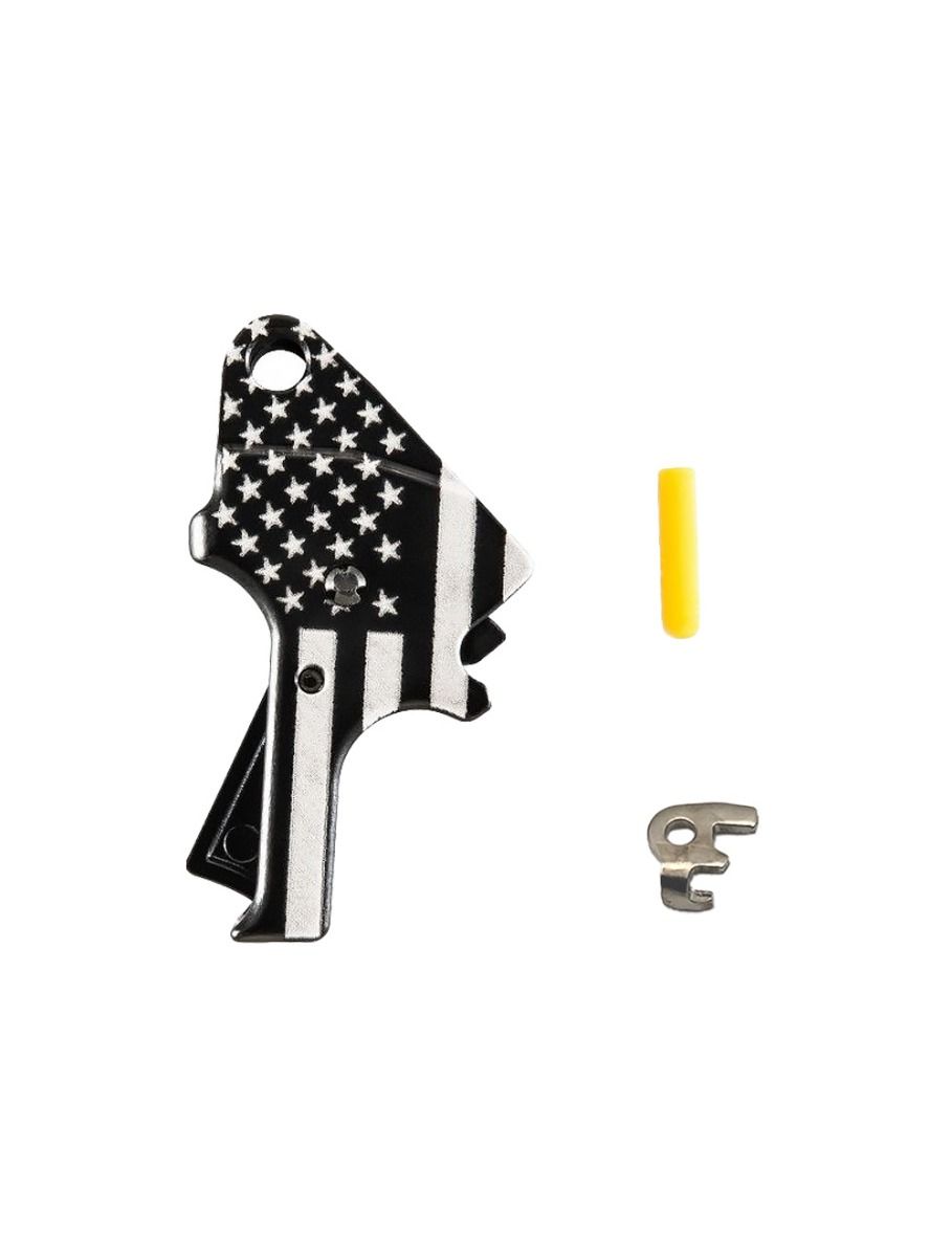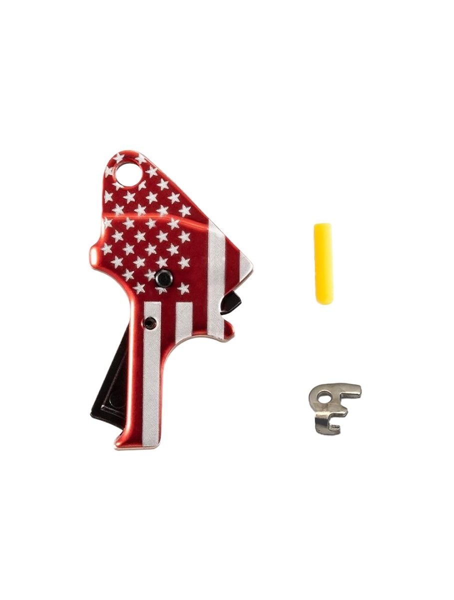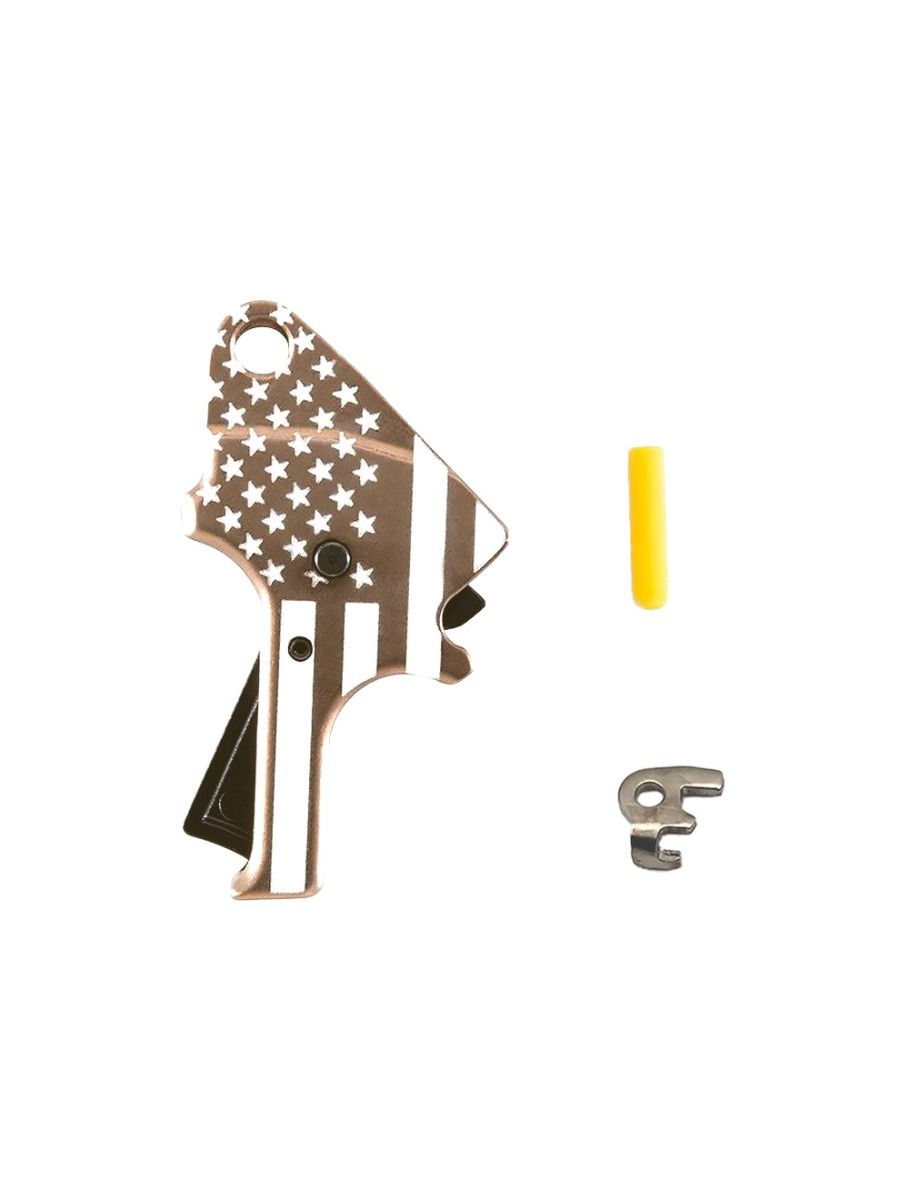 - Construction: Trigger body is CNC-machined from 7075 aluminum, hard coat anodized black. Sear actuator is precision ground tool steel.