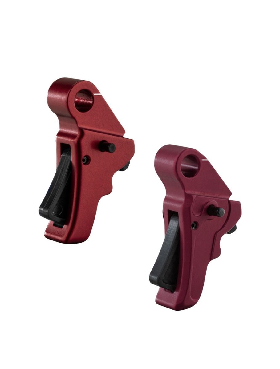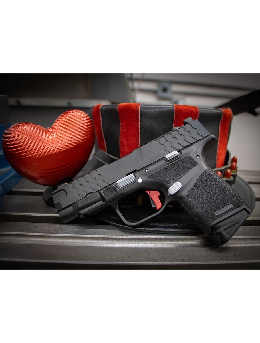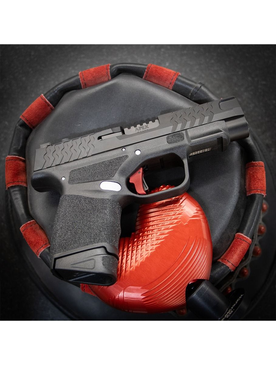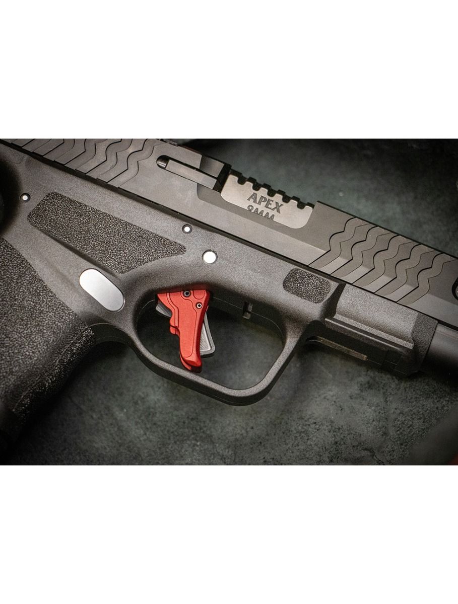 This is a factory-direct blemish deal on the Apex Action Enhancement Trigger for the Springfield Hellcat and Hellcat Pro. The price is $65. That is a significant discount from the standard retail cost. The only difference is the finish: a dark red matte color. This happened because our anodizing vendor made an error. The triggers came back looking different than what we normally sell. Mechanically, every single one of these triggers measures within our standard tolerances. They function exactly like the full-price version. You are getting the same performance for less money. The cosmetic flaw is strictly visual.