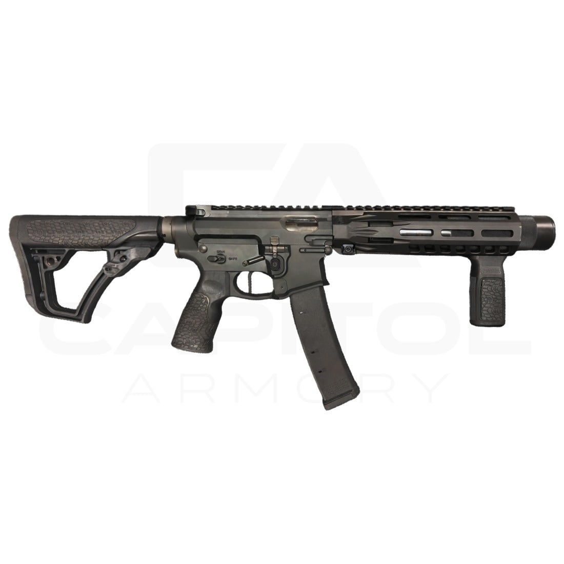 Most 9mm SBRs on the market are either converted pistols or budget-range toys. The Breacher’s Custom Guns Daniel Defense SD is neither. This rifle starts with Daniel Defense’s closed-bolt semi-auto system—the same proven platform trusted by professionals worldwide. Breacher’s Custom Guns then takes that foundation and optimizes it for SBR use. They’ve tuned the gas system specifically for the 5.75-inch barrel length, ensuring reliable cycling with everything from 115-grain range ammo to 147-grain defensive loads. The result is a 9mm SBR that doesn’t just work—it excels. The closed-bolt operation means cleaner shooting and more consistent lockup than blowback systems, while the Daniel Defense heritage guarantees durability that stands up to serious use.