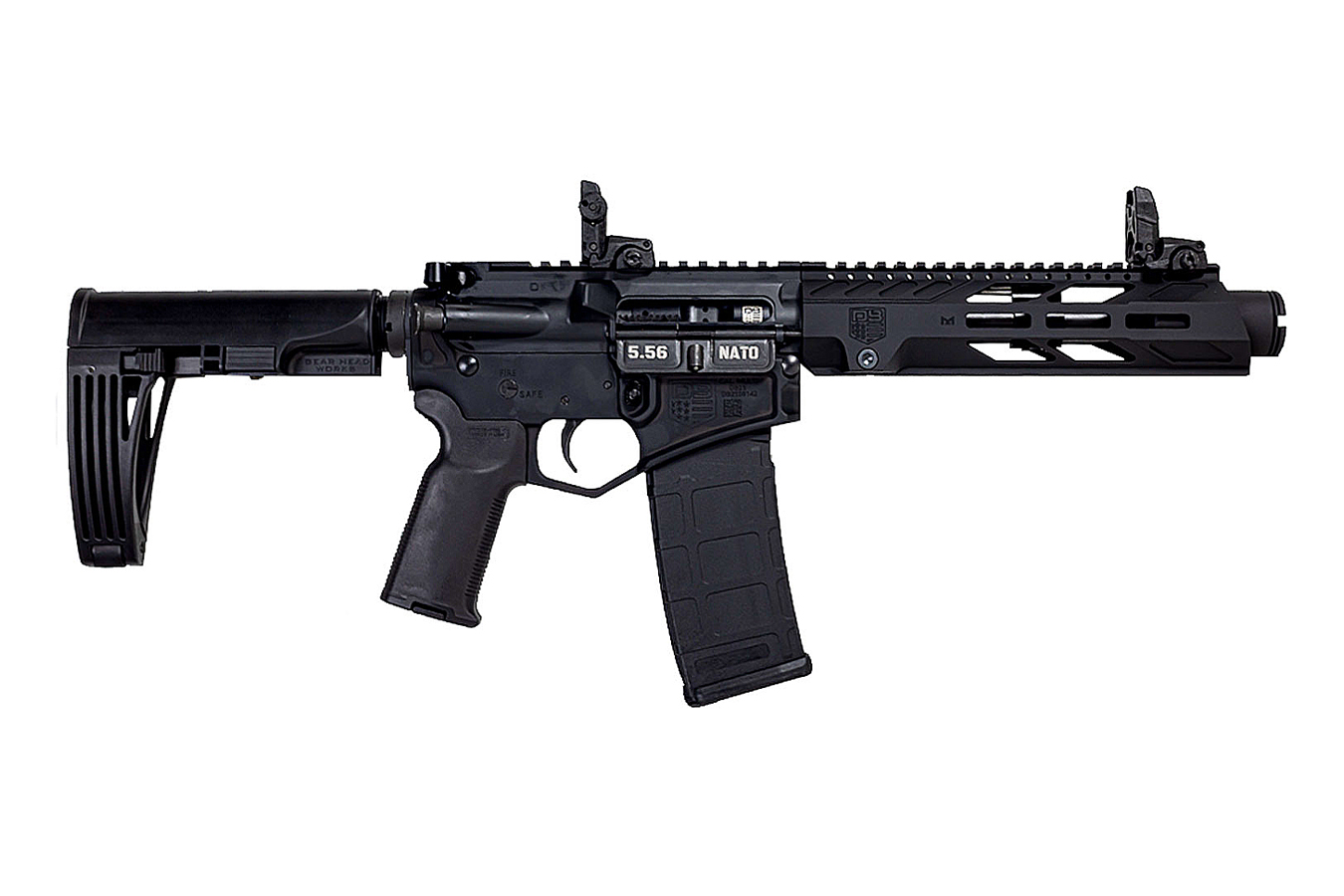 Magpul MOE-K2+ grip enhances control during rapid fire, and the Gearhead Works Tailhook Mod2 brace provides stable shouldering without compromising the pistol configuration. MBUS folding sights offer quick target acquisition while maintaining a low profile when stowed. This combination makes the DB15 equally effective for home defense, vehicle deployment, or concealed carry scenarios where space is limited but performance cannot be compromised.