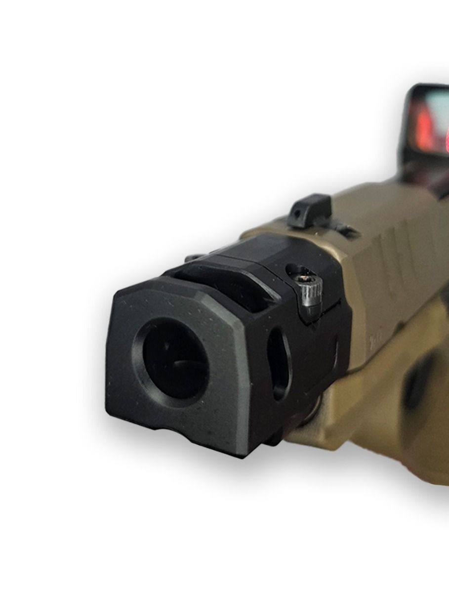 The MRAT Compensator for the FN Reflex pistol is a direct thread-on solution built for the harsh realities of an Arizona desert shooter. Designed to handle high dust, extreme heat, and suppressor-friendly setups, this compensator delivers real, measurable performance without the hassle of permanent installation.