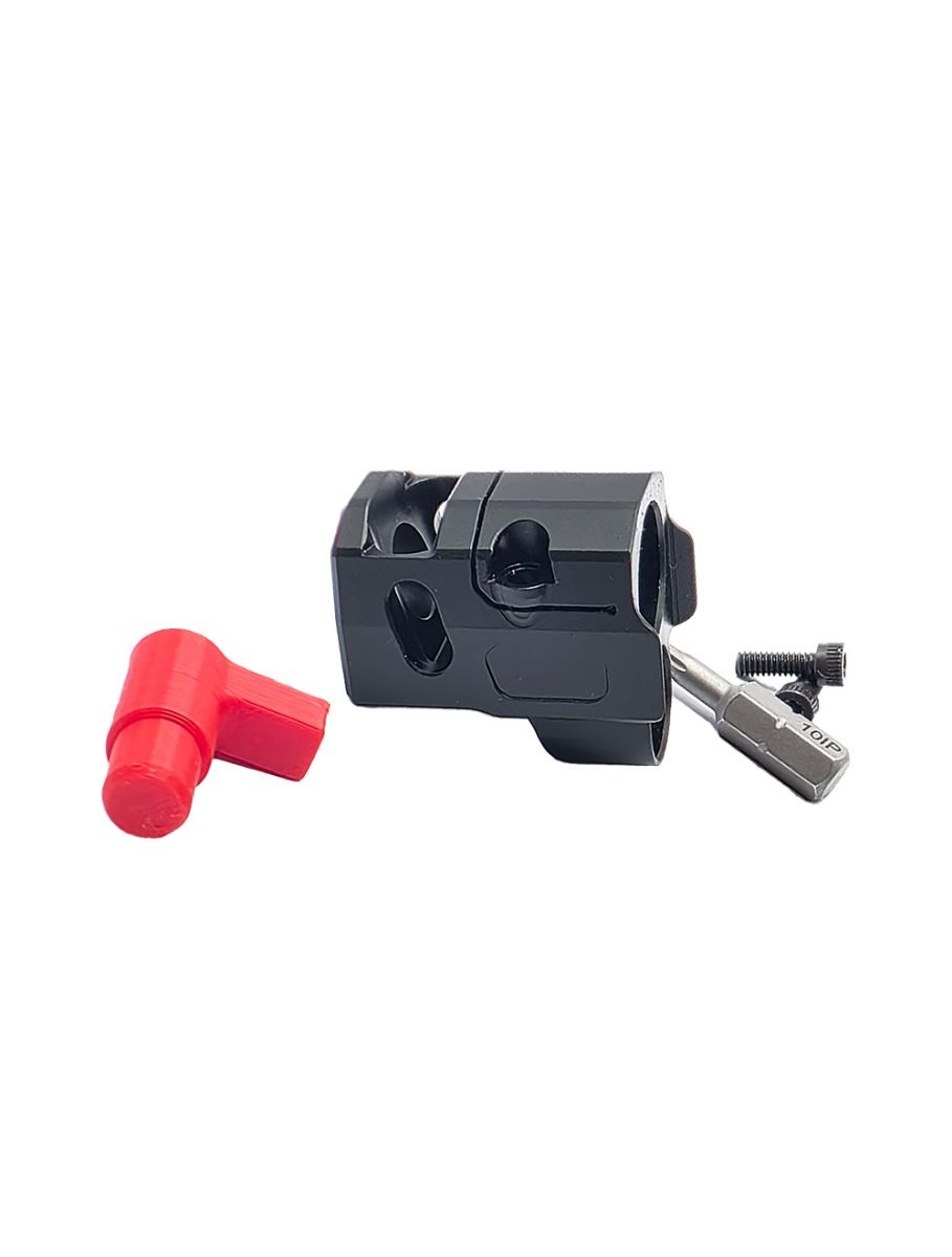 The MRAT uses a built-in clamp, Wire EDM cut directly into the compensator profile. No thread locker needed—just torque the clamping screws to 25 in-lb. This allows fast, secure mounting and removal from the barrel. You can clean the comp or swap to a suppressor without fighting with thread locker compounds. The two clamping screws sit on opposite sides of the barrel threads, ensuring equal clamping force and preventing misalignment. This is the result of nearly two years of testing to give you a compensator that stays put when you need it and comes off when you don’t.