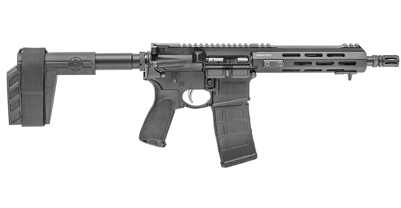 With the success of Springfield Armory’s SAINT™ AR-15 Pistol in 5.56, more people than ever are requesting variations to the original version. The newest iteration in .300 BLK harnesses the power of this combat-proven round for increased capability and versatility in a compact platform. The SAINT AR-15 Pistol features a rugged SB Tactical SBX-K forearm brace to reduce size, stabilize recoil, an